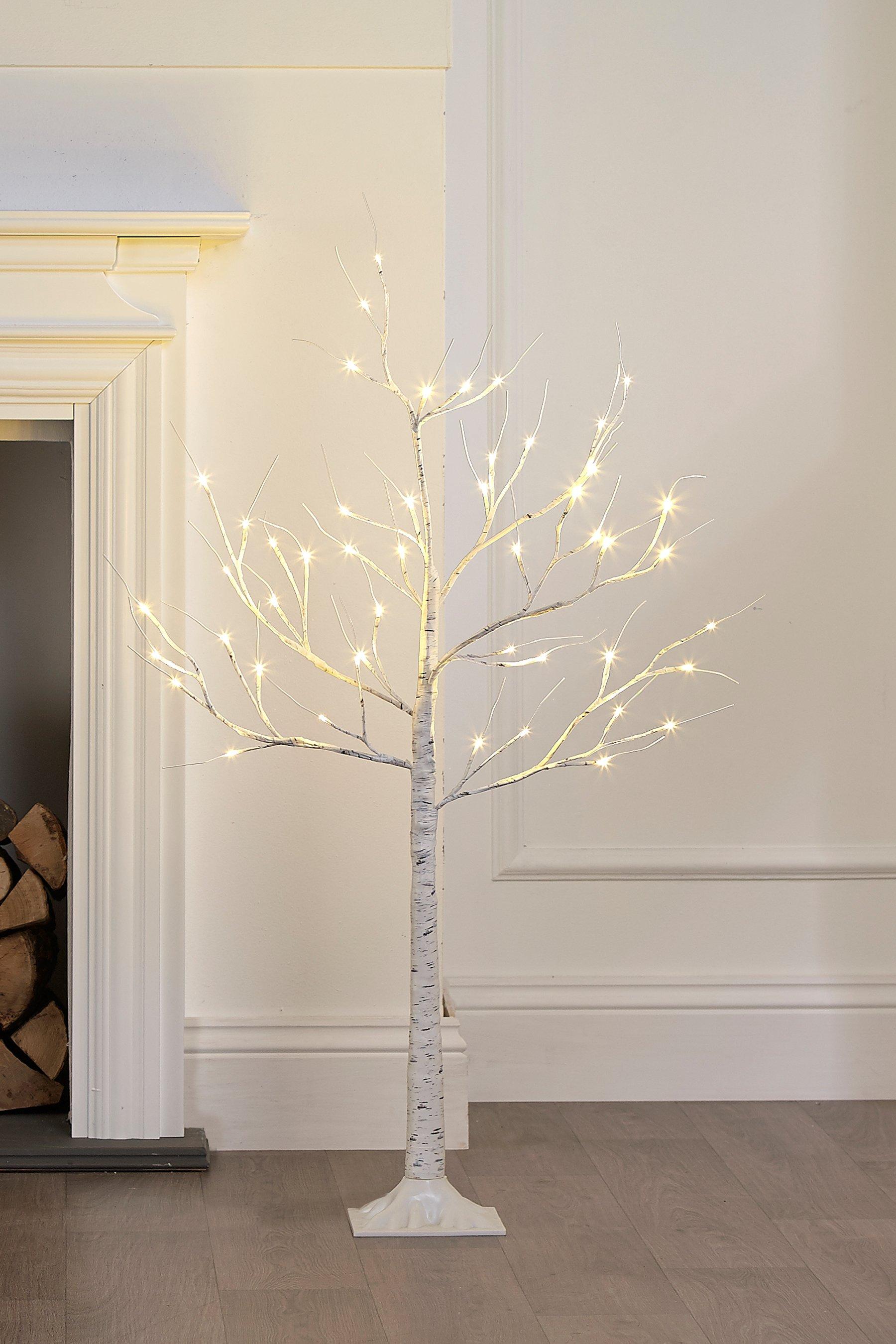 Birch Christmas Tree measures 32 in. Birch Tree Lights 46Ft with 104 Led White Artificial Trees Fairy Light for Home Decor Wedding Decorations Birthday Party Christmas Outdoor Indoor - 1 Pack. The minimalist-style tree is studded with hundreds of LED lights on bendable branches to look gorgeous in your home or as part of your landscape.
