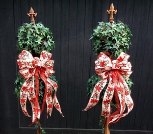 Outdoor christmas ribbon weaving was established in the 11th century. Starting at the top of the column use a small tack nail to secure the ribbon and wrap the column leaving areas of the column to show through. To create a candy cane effect on the Christmas porch columns take weatherproof ribbon and wind it around the front porch columns.