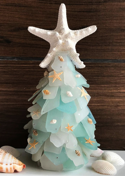 Top Sea Glass Christmas Tree 2021. The final touch will be white shells and lights. 1-2 bags of sea glass depending on size of your tree Starfish topper.